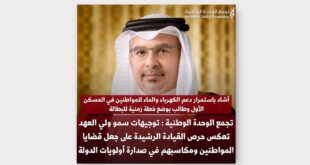 أكمل القراءة »أشاد باستمرار دعم الكهرباء والماء للمواطنين في المسكن الأول وطالب بوضع خطة زمنية للبطالة